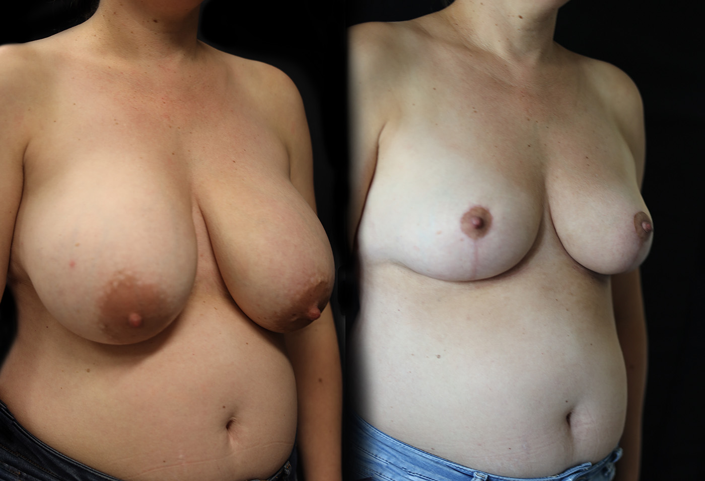 De borst wordt gelift, opnieuw gevormd en lichter — met directe verlichting van klachten.