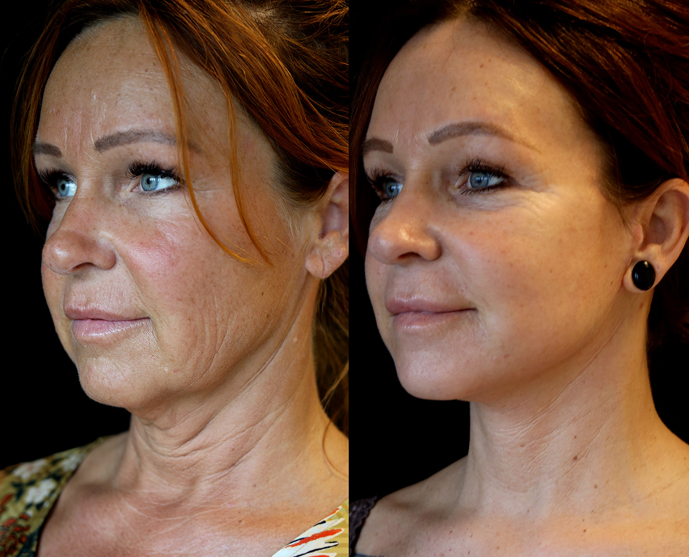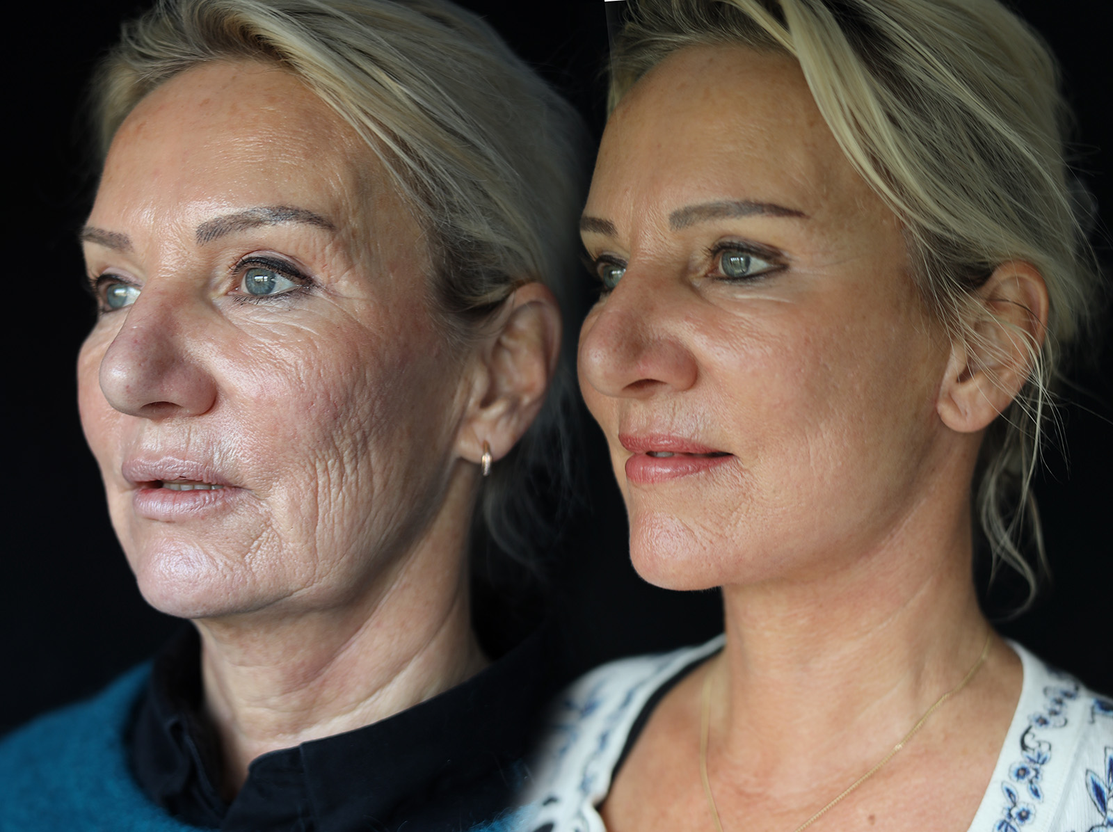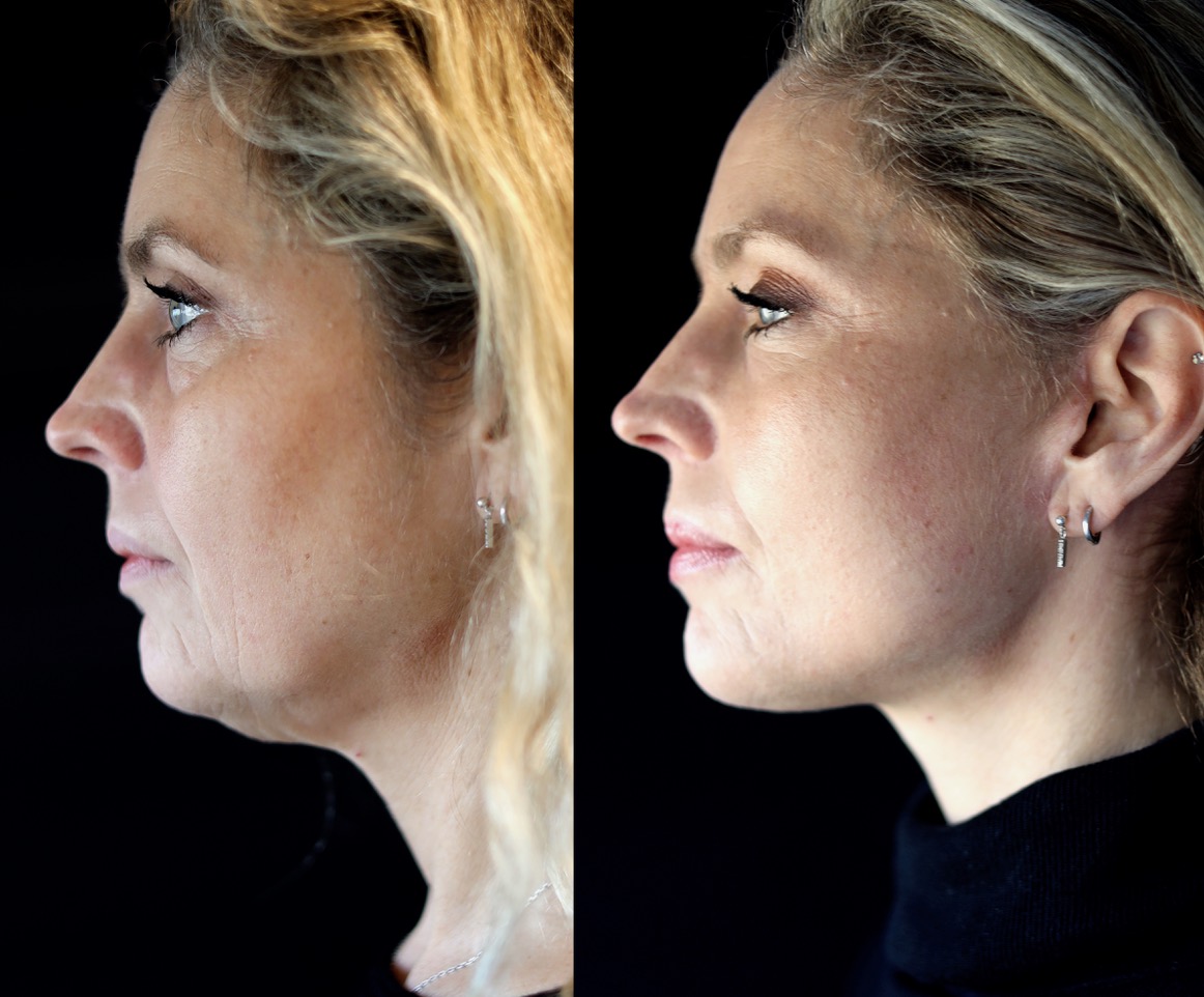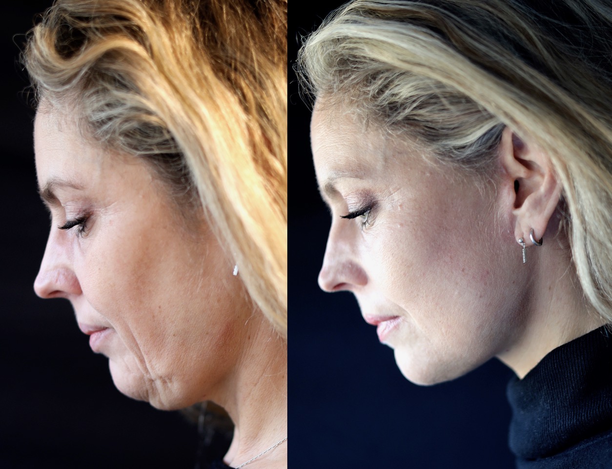 Sterker nog: proberen verzakking te camoufleren door steeds meer volume toe te voegen, leidt vaak tot een onnatuurlijke uitstraling. Het volume is meestal niet verdwenen, maar gezakt. Wie dat volume bovenin gaat aanvullen zonder het te verplaatsen, creëert uiteindelijk een vervormd beeld waarin iemand zichzelf niet meer herkent.