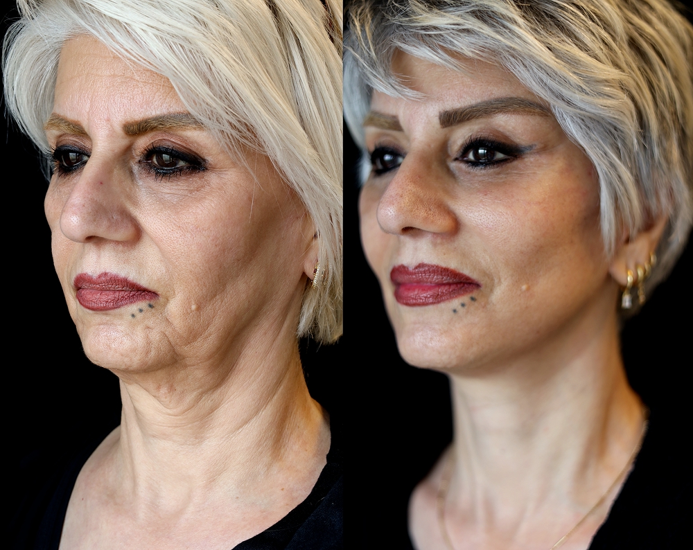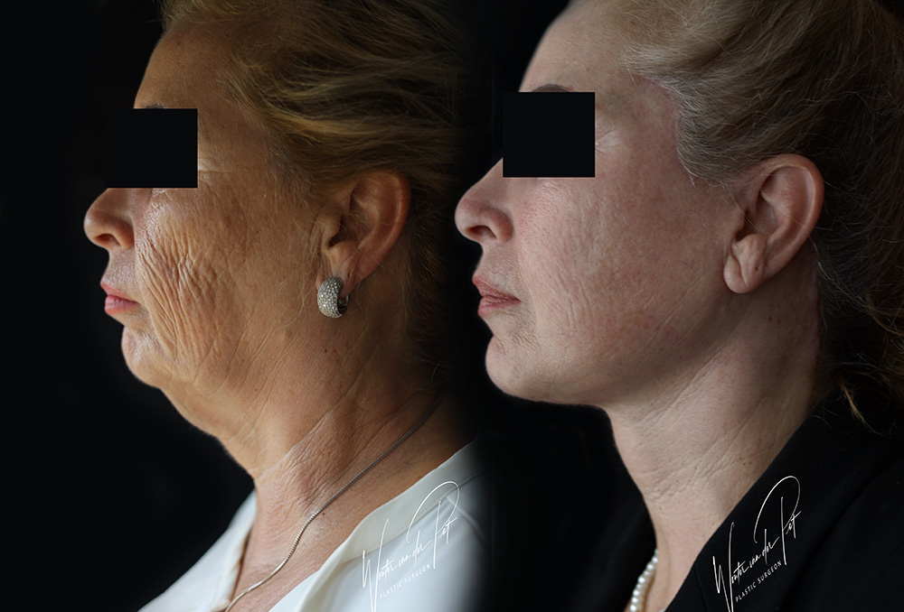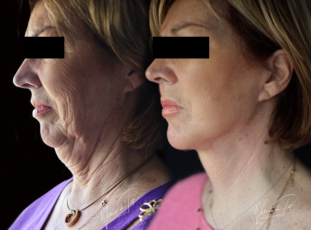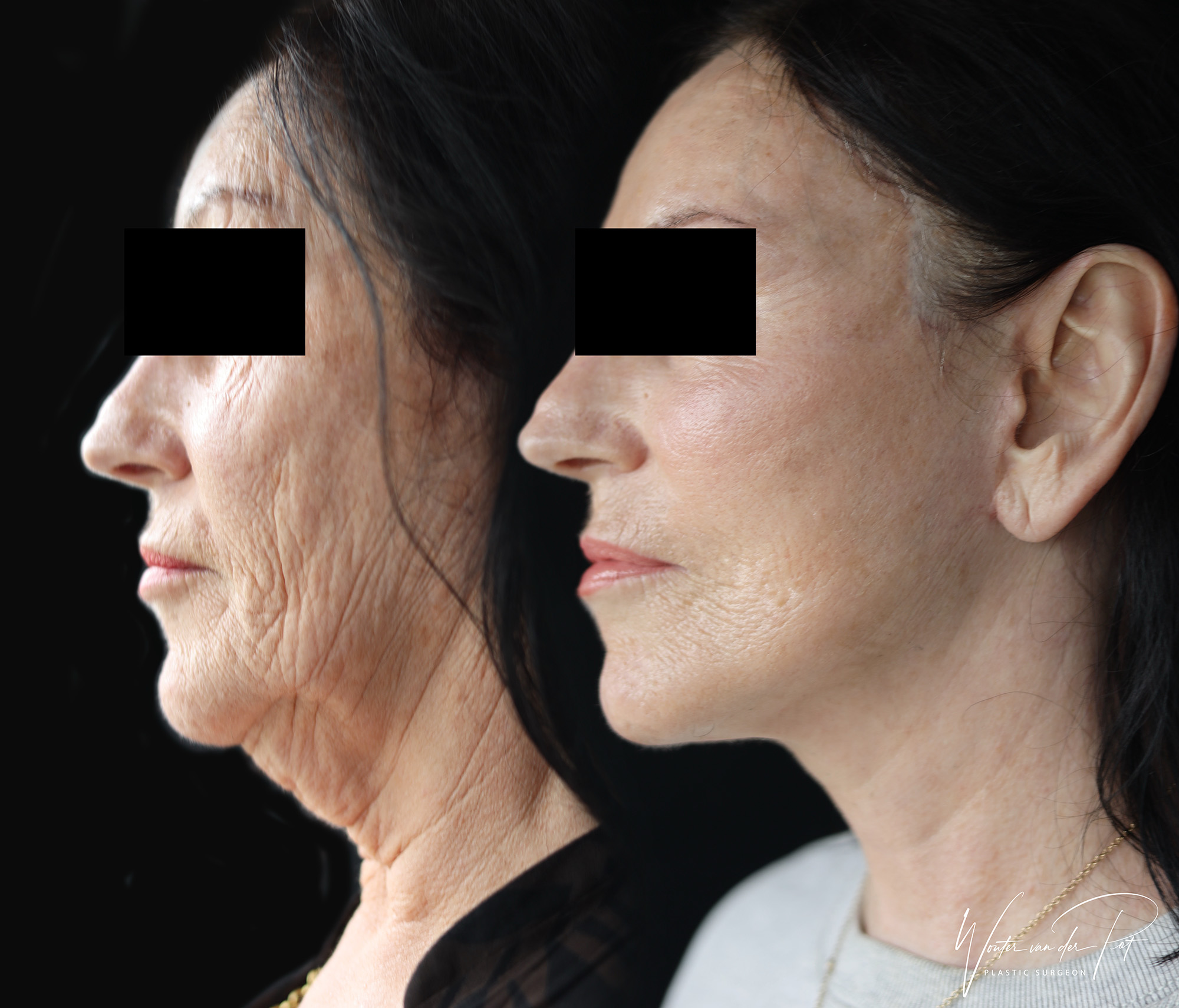 Dat is precies wat een deep-plane facelift mogelijk maakt. Door onder de SMAS-laag te werken, kunnen de natuurlijke ophangpunten worden losgemaakt en kan het weefsel als geheel weer omhoog en naar achteren worden verplaatst. Hierdoor verbeteren kaaklijn, hals en wangcontouren op een anatomisch correcte manier.