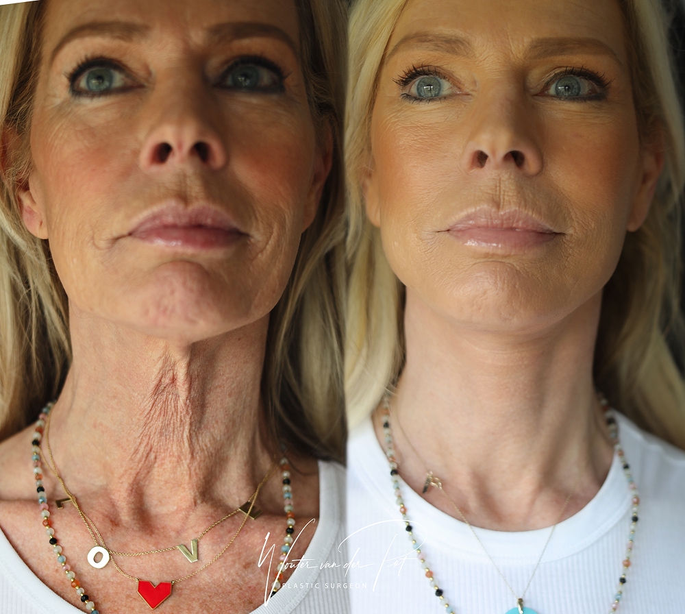 Bij Gooimeer Clinics behandelen we gezicht en hals vrijwel altijd in combinatie. Een facelift zonder de hals mee te nemen geeft zelden een harmonieus resultaat. Een deep necklift maakt daarom standaard deel uit van onze deep-plane facelift.