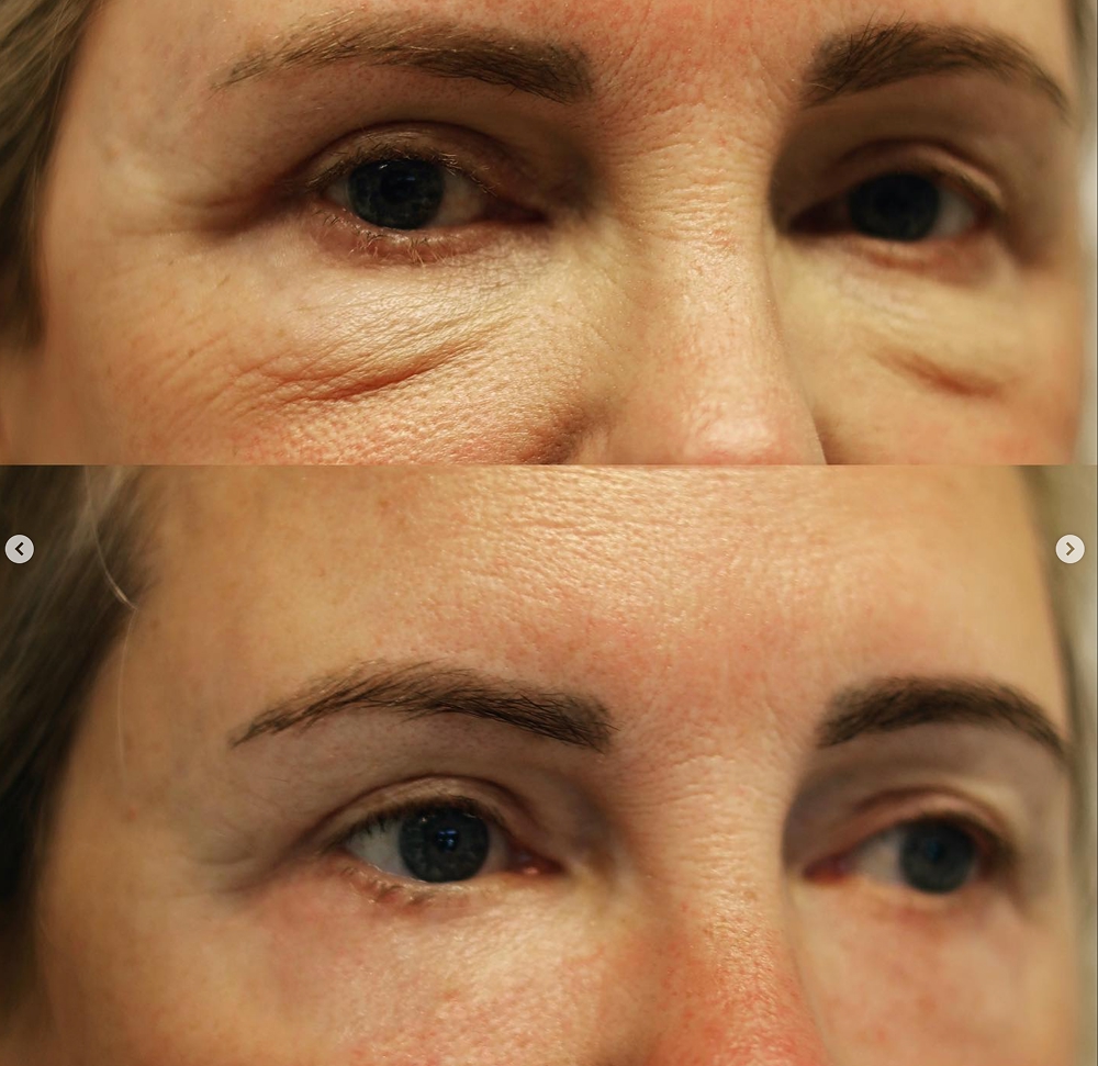 Er wordt slechts een kleine hoeveelheid huid verwijderd. Te veel huid weghalen kan het onderooglid naar beneden trekken en dat willen we absoluut voorkomen.
