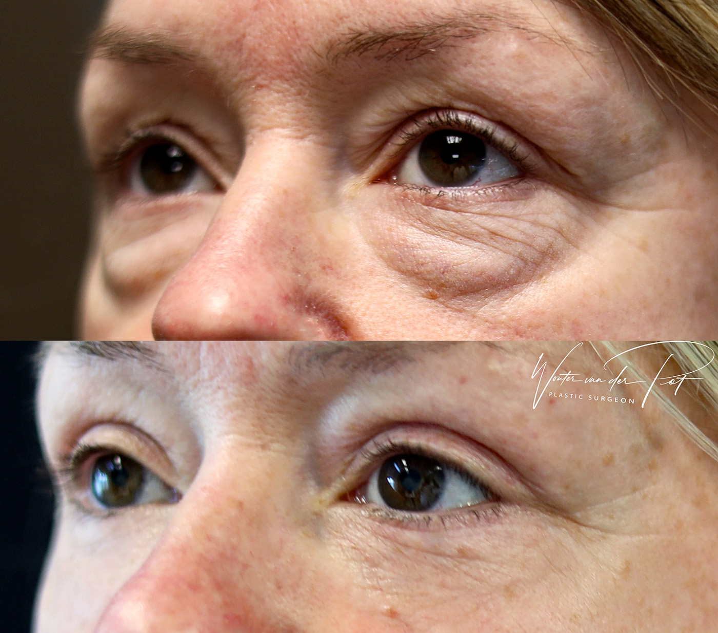 Het verplaatste vet kan niet terug naar de oorspronkelijke positie. Hoewel het gezicht natuurlijk blijft verouderen, keert de diepe groef onder de ogen meestal niet in dezelfde mate terug. Het effect van een goed uitgevoerde onderooglidcorrectie is daarom langdurig.